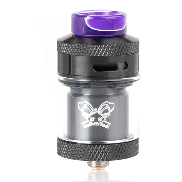 The HellVape Dead Rabbit 25mm RTA is the resulting brainchild between HellVape and Vapin’ Heathen, presenting an impressive expandable juice capacity, a raised four-post build deck, and a top side adjustable airflow ring. The HellVape Dead Rabbit RTA utilizes a 4.5mL bubble glass to expand the standard 2.0mL eJuice capacity for longer vape sessions. The build deck is slightly reiterated from the previous Dead Rabbit atomizers, keeping the raised build deck to allow for extending coil leads to be snipped without painstaking measuring. Built for single or dual coil configurations, the Dead Rabbit RTA build deck has four posts with wide terminals to easily accept coils of any size, configuration, or thickness. The inner chamber has a funneled cap to concentrate and force the flavor from the coils to wash over the tastebuds. The top side airflow ring channels airflow from the top and vents it into the inner coil chamber to create an environment conducive to flavor and vapor.
